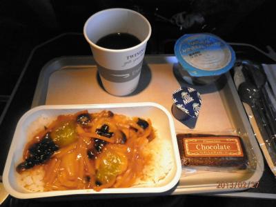 復路(ロンドン積込み)の食事もカレーでイマイチ、セカンド(朝食)はカップラーメンにしました。