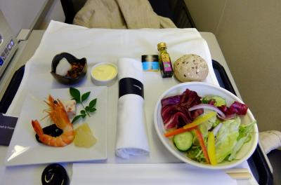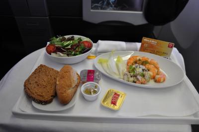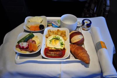 シート配置、食事など十分にエコノミー席よりアップされており、コストパフォーマンスも良好です。