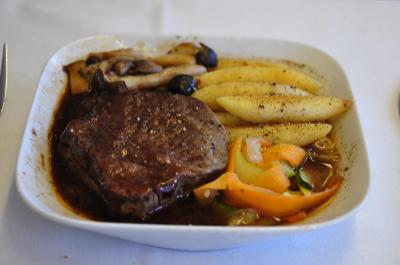 夕食はホテルに接続したレストランを利用しましたが、肉は焼き過ぎでボソボソ、パスタはグタグタと外れでした。