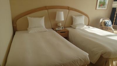 ・部屋→オーシャンビュー選択。眺望は良いですが日差しが強いので日が落ちるまではカーテン必須です。室内の照明はやや古いです。部屋のお水はペットボトルではなく缶でした。