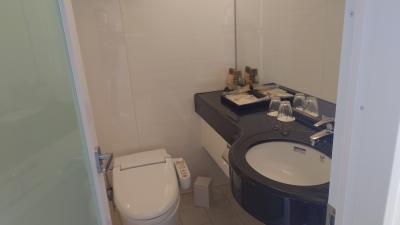 シャワーはレインフォール式でやや使いにくいです。水量は申し分なし、お湯は普通に出ますが混雑時は出るまで時間がかかるかも。