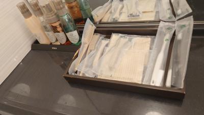アメニティは最低限。シャンプーとリンスはついてないと事前に案内されてましたが持ち帰り用の携帯用ボトル2本が置いてありました。