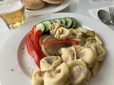 冷蔵のミート入りのラビオリがあったので、それを湯掻いて3日目の夕食とし...