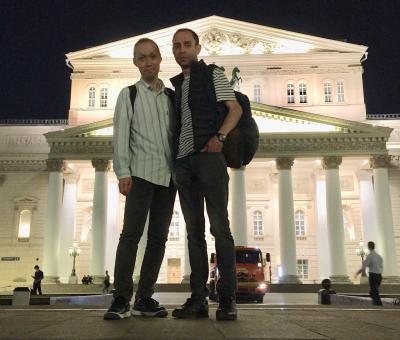ボリショイ劇場の前で友人と