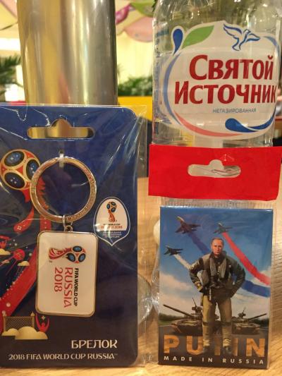 ワールドカップキーホルダーと、プーチンのマグネット。
