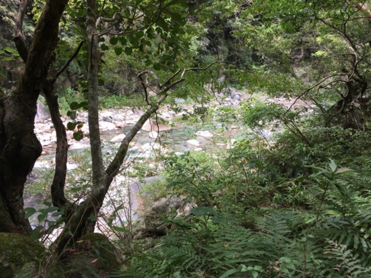 曲がっている道を歩いていけます。意外と距離があるので、スニーカーを履いて、すぐに飲める飲料水を用意しといたほうがいいです。入り口から入ると一気に見える景色は中国の秘境のような気もしました。緑がどこまでも綺麗でした。