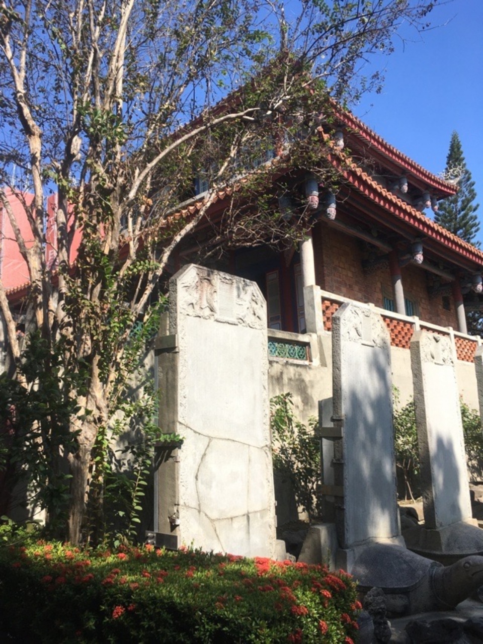 日本統治時代の建物が多い台湾ですが、これはオランダ統治時代のもので、当時の建物を生かして現在に至っています。そこまで広い芝生の横を歩いて行きました。敷地内には、岩や石でできた庭園と池もあり、金魚と鯉が泳いでいました。
