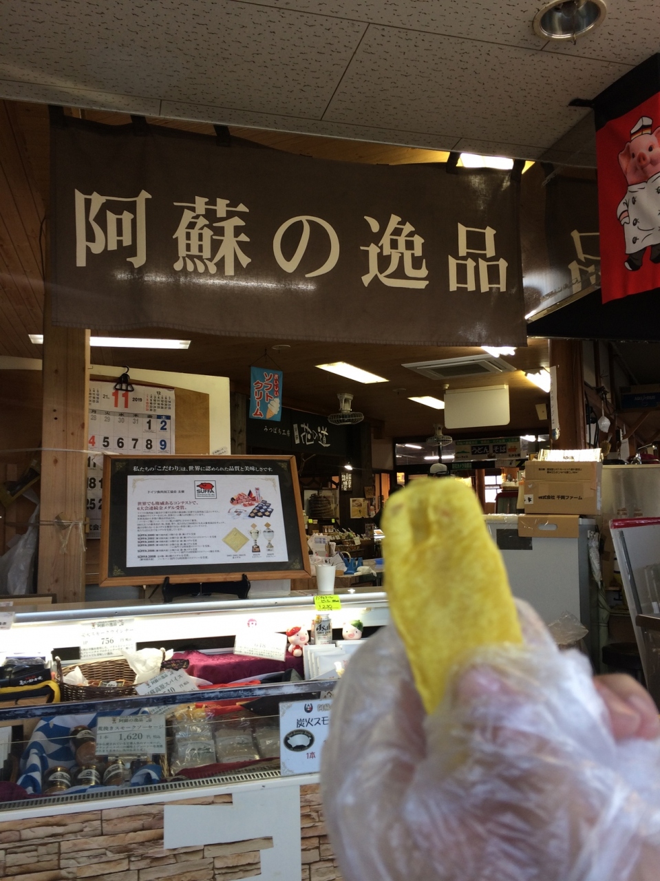 九州一周旅行の際に、熊本の大観峰に訪れて、そこで大観峰茶店に行きました。現金とカードで、お土産やお菓子が買えました。地元名物で、賞を取ったソーセージやからし大根などもありました。おもちも売っていました。からし大根は辛かったです。
