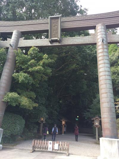 神社の入り口のところに、大きな杉の木が立っています。本堂までの両サイドに杉がたくさんでした。立派な木の太さでした。神社の入り口の鳥居も見上げるくらい高いものです。ここから高千穂までは、山道をかなり歩きました。