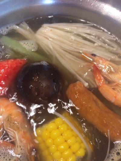 寒い日だったと旧正月時期がちかったので、お店は混んでいました。鍋の具材はキャベツ、えのき、菜っ葉、しいたけなどの野菜、根菜類で、肉を選べます。うどん、ごはんも選べます。たれも自分で酢やネギで調整できました。