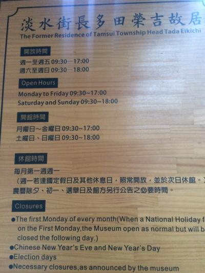 淡水にある建物で、多田栄吉の旧邸の近くにありました。閉館前で、ほとんど人はいませんでした。ここの庭から見えた淡水河はすごくよく見えて、いいところにたっています。税関事務所だったようですが、個展が開かれ油絵を飾ってました。