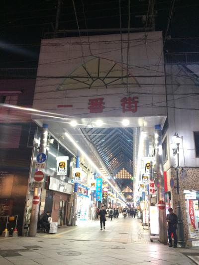 妻と九州一周旅行をした際に、宮崎で宿泊したホテルからこちらまで徒歩で夕食を食べに行きました。飲み屋が多かったです。大通りの橘通りに面したアーケードなので、開放感がありました。正直、アーケードの高さの割には、さびしい感じがしました。