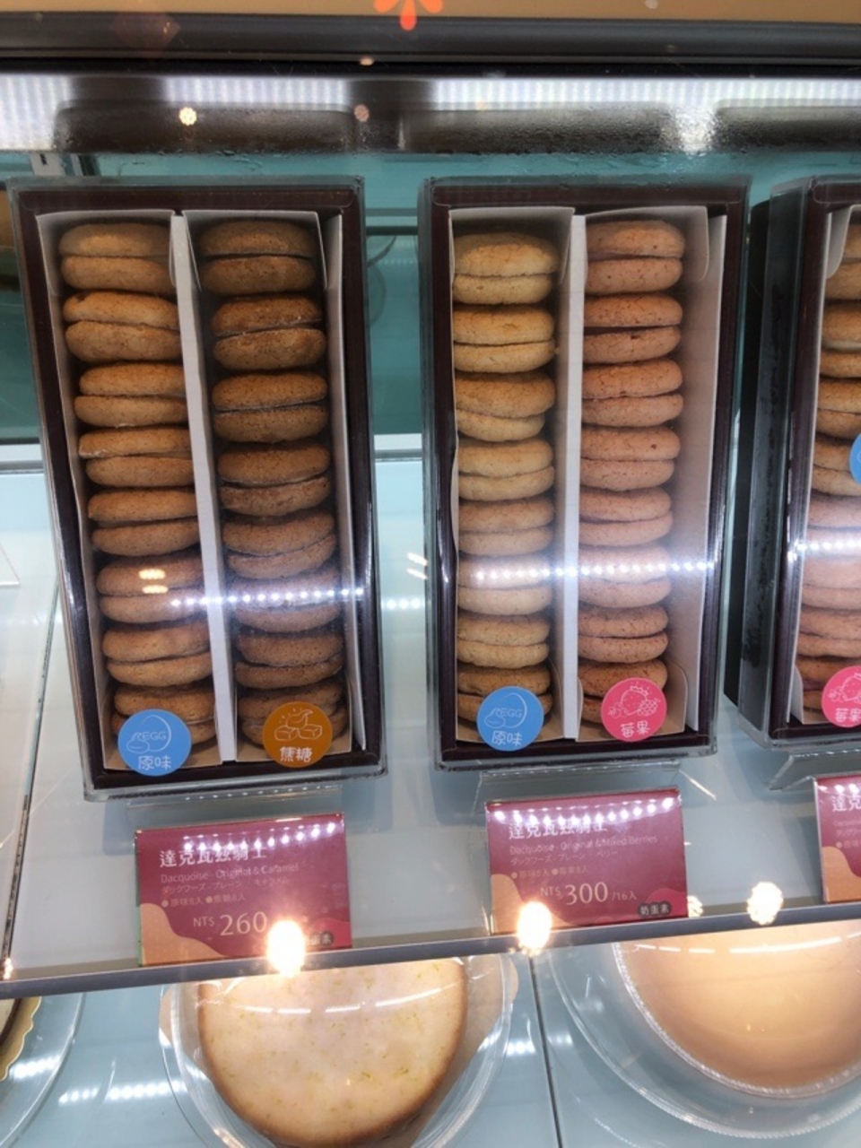 商品の種類は、そこまで多くありませんでした。ショーケースの中に入っているのと、ギフトセットみたいになっているものくらいです。マカロンは、1個ずつからも買えますが、8個セットのほうが多少お得です。日本語の表記もありました