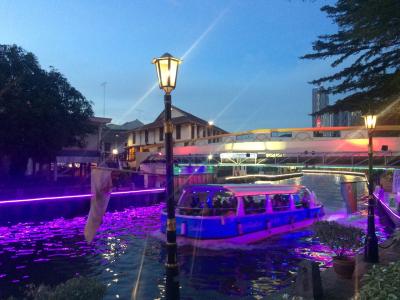 世界遺産の街マラッカを流れる川が夜は、ブルーのライトに照らされています。とても素敵な景色の中をゆったり船で進んでいきます。川沿いを歩いている観光客や現地の人たちが手を振ってくれたりもしました。昼間は、ものすごく暑そうでした。