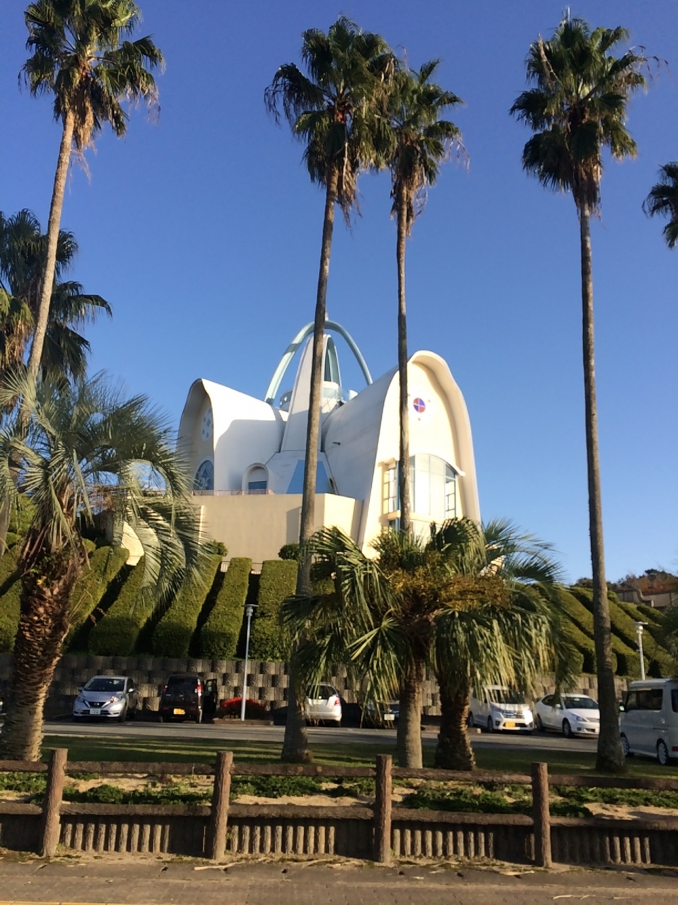 建物の形が興味深かったです。熊本県にある天草・島原の乱の歴史テーマパークとよばれています。楕円系の入口の壁の上にさらに細長めの楕円系の壁があり、両サイドに羽根のような袖のように建物が広がっていました。17時までです。