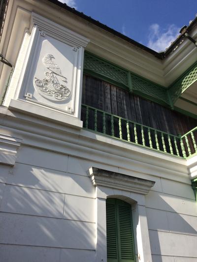 近くの砂利の駐車場にレンタカーを停めました。敷地の左側に旧日野医院についての説明看板がありました。医師の家系で多大な貢献をしたようです。病院とはいえないくらい素敵な白と淡いパステルグリーンの建物でした。