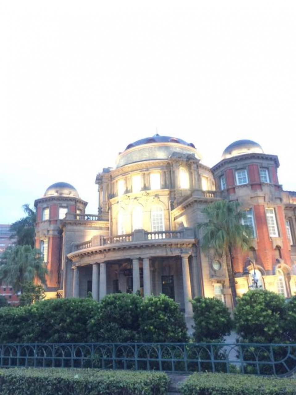 ちょうど夕方に妻と台北駅付近を散策している時に、再来しました。去年に来た時は、工事修復中でシートで覆われていましたが、今回は綺麗になってライトアップもされてきれいになっていました。日本人の設計士の建物です。