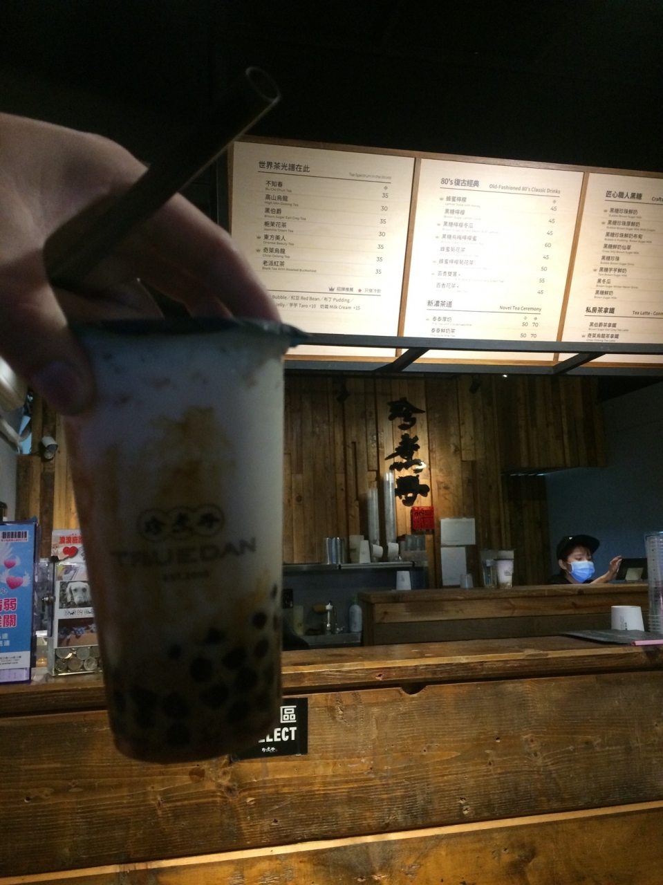 かなり高価なタピオカミルクティーのお店です。前回来た時は、もっと並んでいた気がしますが、今回はそこまでの行列はありませんでした。黒糖を入れるのがこのお店の売りなので、無糖にすると意味がありません。Mサイズにしました。