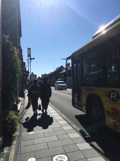 和装のレンタルがあるのか、自前なのか、和服で歩いている人もいて、海外からの観光客が写真を撮っていました。路線バスも通るので、駅から来ても便利です。古い家屋を活用して今も元気に商売されていて、元気をもらいました。