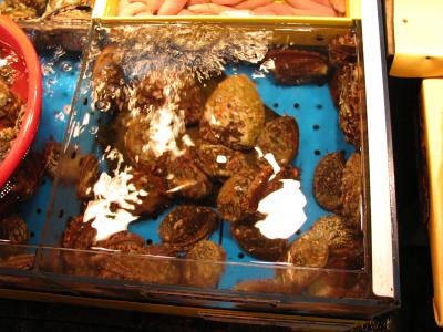 あわび。どこへいっても、山のように積んである。