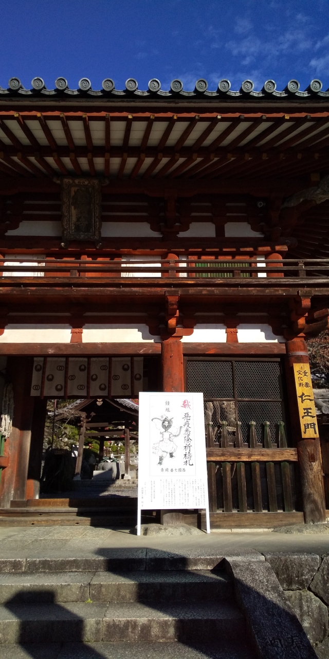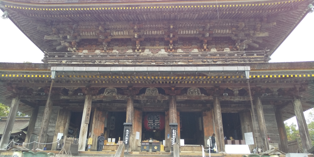 仁王門は修理中ですが、日本最大秘仏御開帳が春と秋の年2回行われています。珍しい青い3体の仏像は今にも飛び出してきそうな迫力があります。金峯山寺へはロープウェイを利用し、参道では数々のお土産屋さんが並んでいます。