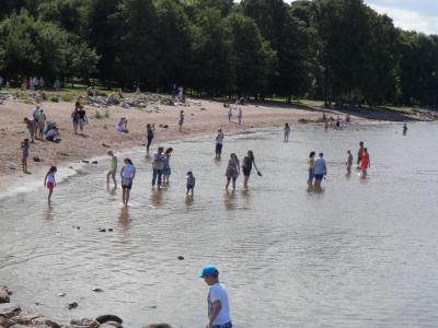 ペテルゴフ。夏休みで地元の方が多い様子。暑い日でしたので海で涼んでいま...