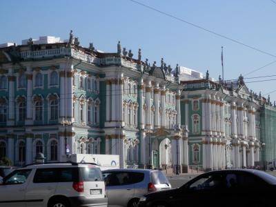 朝のエルミタージュ。車が渋滞していました。渋滞していないと、ビュンビュ...