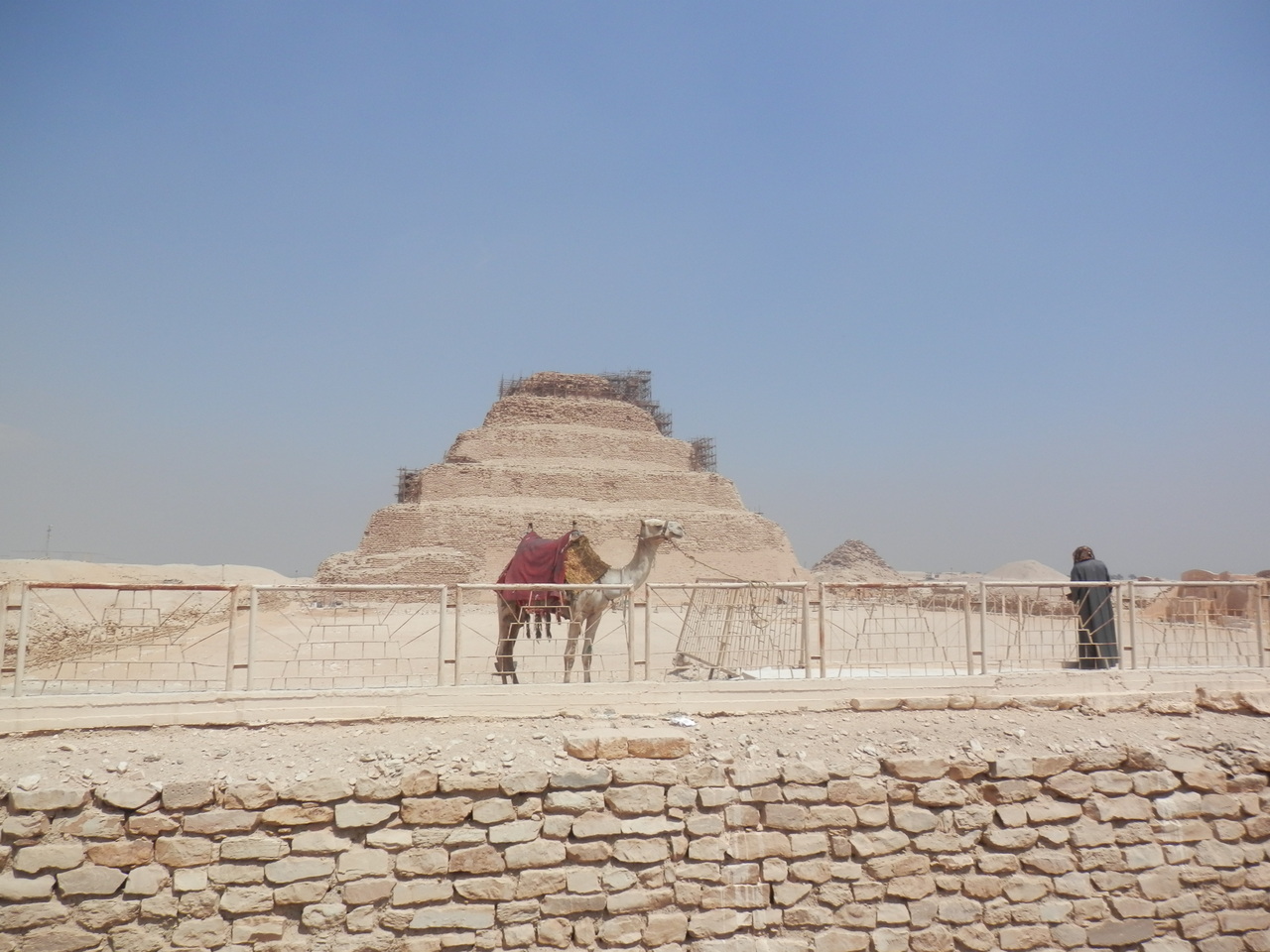 階段のピラミッドは工事中でしたが、市内で購入した硝子のラクダの置物に入れる「砂」を