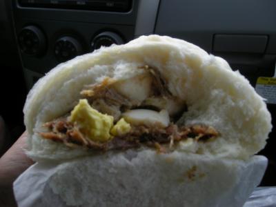 中身は日本の肉まんの具とは少し違って、ほぐしたポークとお野菜類、そしてゆで卵も入っていて美味しかったです!