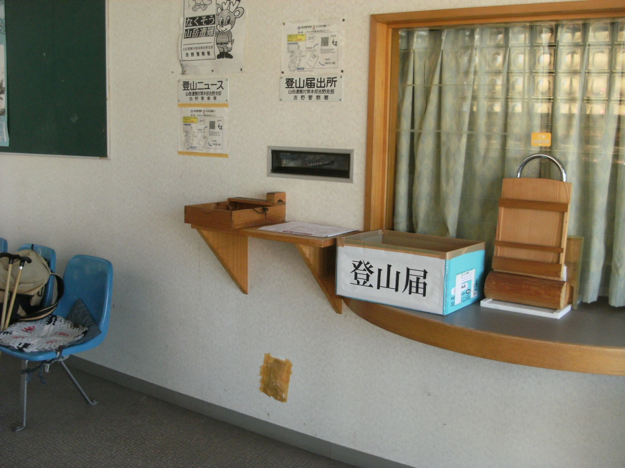 大和上市駅から出ている大台ケ原線のバスは、沿線観光案内のアナウンスつき。次回以降の旅行に生かせそうな情報がもりだくさんで、とても参考になりました。車窓からの眺めも絶景です。大和上市駅にあるバス待合所には、大台ケ原のガイドマップがおいてあり、その裏面には和佐又山登山コースガイドが印刷されていました。待合所内には登山届用紙と提出ポストもあります。