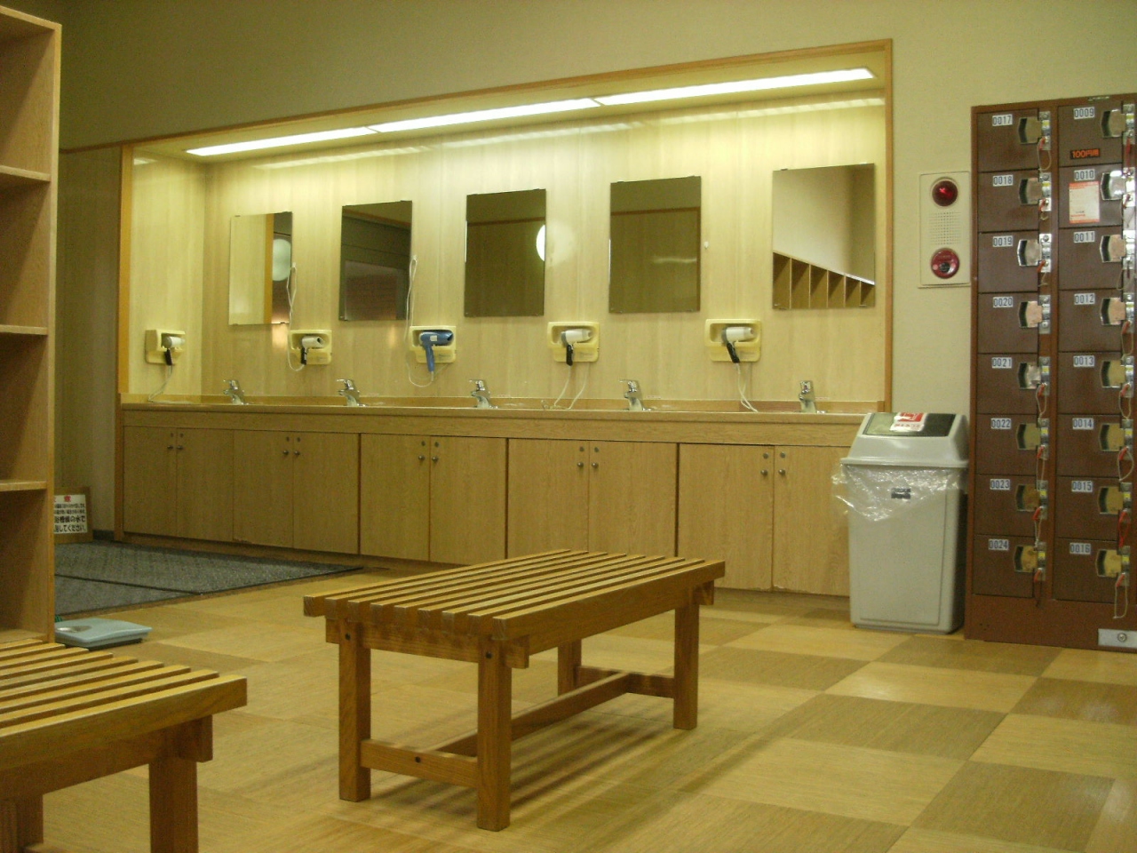 ゴンドラのりばのすぐ近くにあり、バス停もすぐそこ。バスの待ち時間に汗を流すのに便利です。入浴料金は700円で、貴重品ロッカーを使う場合は別途100円必要。鍵のかかるロッカーは小容量の貴重品ロッカーだけで、荷物や脱いだ衣服は扉のない整理棚に置くようになっています。風呂はふつうのタイル張りの大浴槽、ガラス戸の向こうにある岩風呂風の浴槽、サウナ室の3種類。利用客の少ない日だったせいか、サウナ室は床が熱すぎて座っていられませんでした。また、脱衣所のドライヤーは、大半が「hot」でも生温かい風しか出てきませんでした。それらはすべてテスコムの製品で、1台だけあるパナソニックのだけちゃんとした温風が出ました。出力が違うのかと思って見たのですが、どちらも同じ1200Wでした。畳敷きの休憩室にはアイスや飲料の自販機があります。