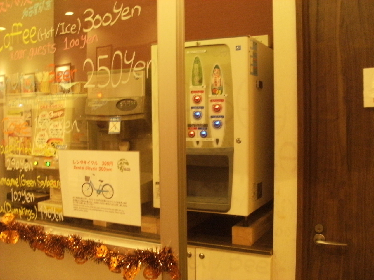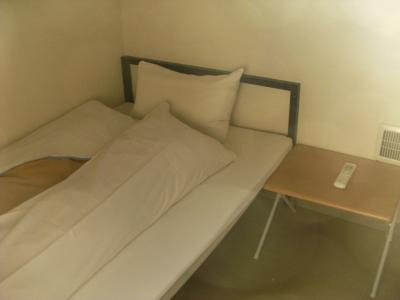 部屋にはベッドがあるだけでテレビも何もありませんが、そのほうが眠るには良かったようで、ぐっすり眠れました。狭いといっても、カプセルホテルよりはずっと広いですし、エアコン完備で自分の好みに合わせて温度や風量を調節できて快適に過ごせます。各階に共用の冷蔵庫、電子レンジ、湯沸しポット、コップ(電子レンジ対応)があって便利です。1泊100円でレンタサイクルも借りられるようです。16:30~20:30という短いフロント営業時間には注意が必要です。