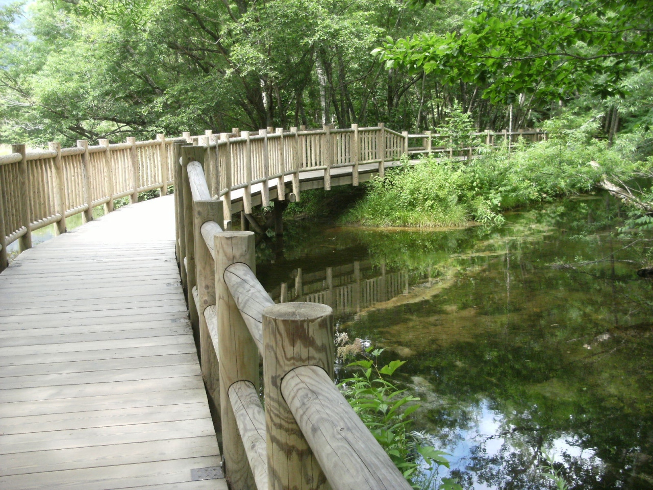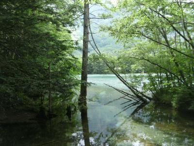護岸や堤防などはなく、池の中には立ち枯れた木がいくつもあって、人工のため池とは違う自然な感じがして良かったです。遊歩道で池の畔を歩くと、池と陸の境界があいまいで、自然に水がたまってできているのだということがよくわかります。