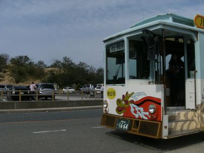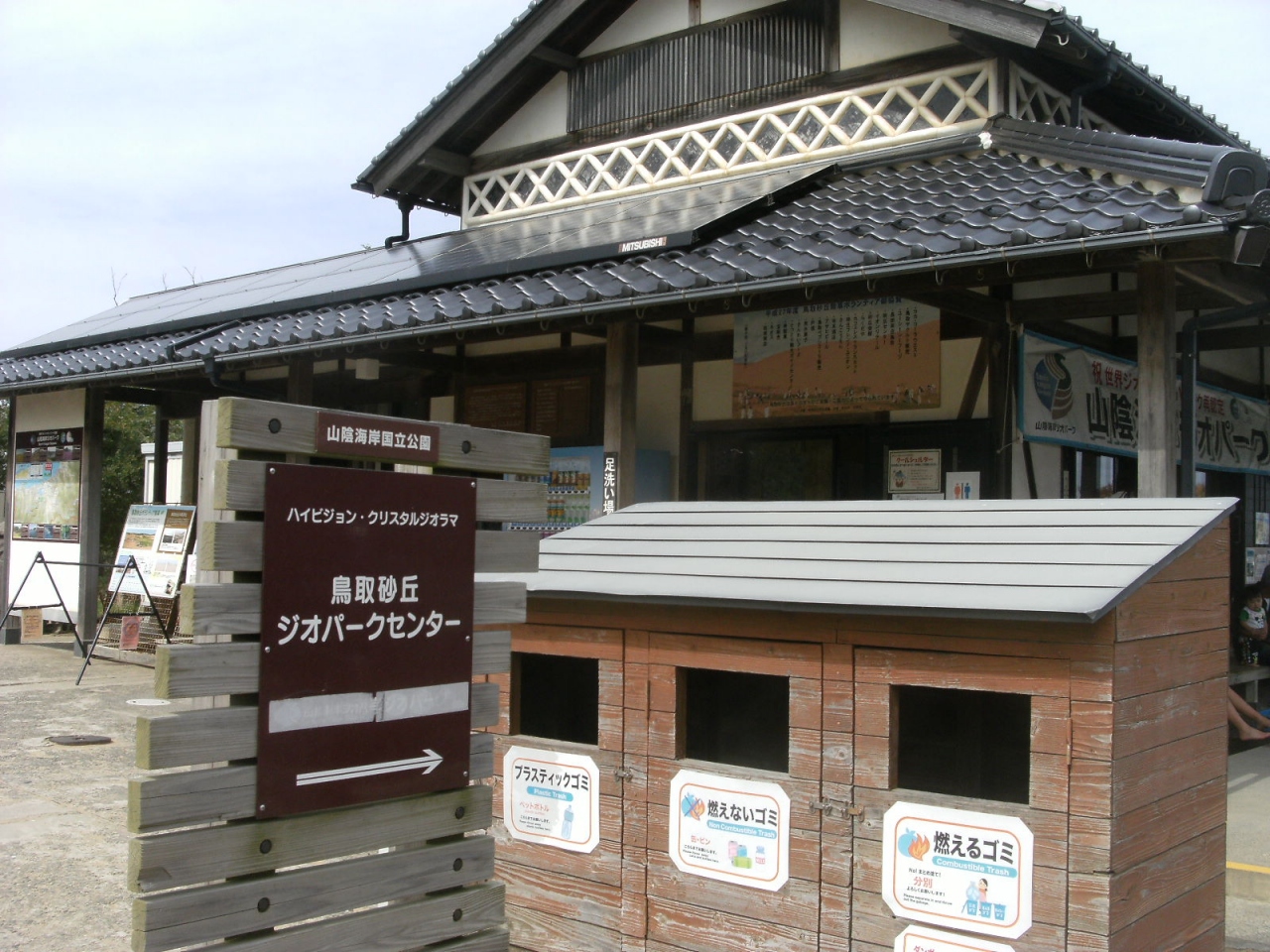 本格的な博物館のようなのを想像していたのですが、実際は中学・高校の文化祭を思い起こさせるような、なんとも手作り感に満ちた展示で、いささか拍子抜けしました。ただ、テーブル・イスがあって、無料の休憩所(飲食は外で)としても利用できますし、砂丘散策用のサンダルを無料で貸し出しているほか、足洗い場もあります。施設内に入る人より、外の足洗い場を利用している人のほうが多いようでした。