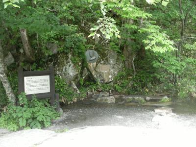 道端の自然の岩に肖像レリーフと碑文が埋め込まれています。さほど大きいものではありませんし、岩肌は苔むし、木や草が繁茂して、自然の景観に半ば溶け込んでいるので、もし傍らの大きな案内板がなかったら、見逃してしまいそうです。とはいえ、景観をぶちこわすような巨大な銅像などをつくらなかったのは、むしろ評価すべきでしょう。