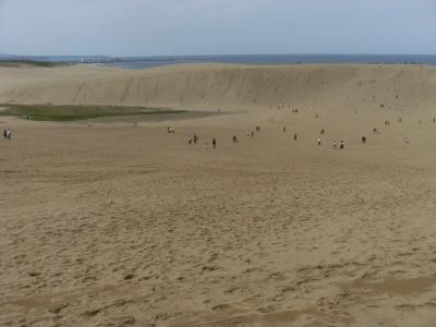 なだらかな丘を想像していましたが、実際はかなりの急傾斜でそびえ立っており、とくに海側は絶壁に近い印象です。ところによって傾斜のゆるいところもあるらしく、海岸に下りている人たちも見かけましたが、自分のいたところからだと、下りたら上がって来れそうもなかったので、下りる気は起きませんでした。日曜で観光客が大勢来ており、人の多いところだと踏み荒らされていまいちきれいに見えませんが、砂丘はとても広いので、人の足跡のついてないところは、いくらでもあります。