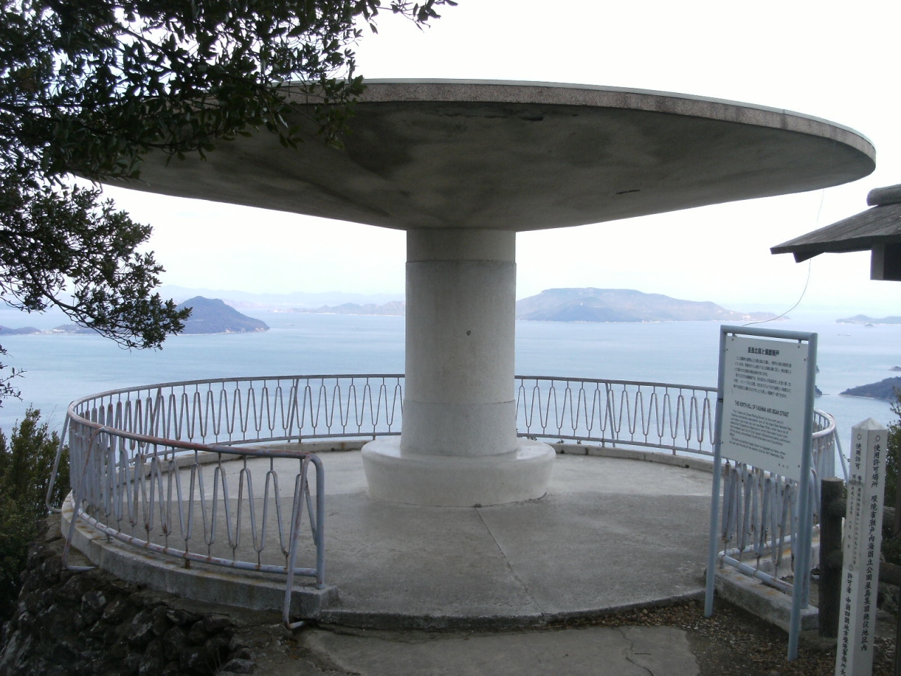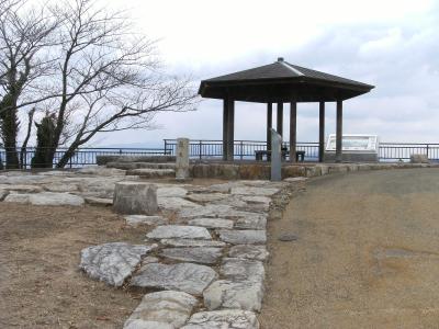 JR屋島駅、ことでん屋島駅から屋島ドライブウェイの終点にある南嶺駐車場にバスが1時間に1本運行されています。運賃は大人・こども共通で100円と格安。ケーブルが廃止されて、かえって便利になったといえるかもしれません。山上には舗装された遊歩道が尾根に沿って整備されていますが、平行して舗装されていない山道もあります。忠実に尾根をたどっているのは山道で、一部には両脇が切れ落ちて細くなっているところもありますし、溶岩台地らしいごつごつした岩場もあり、景色も良くて、なかなか楽しい道でした。