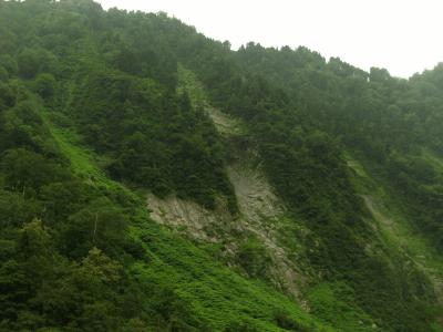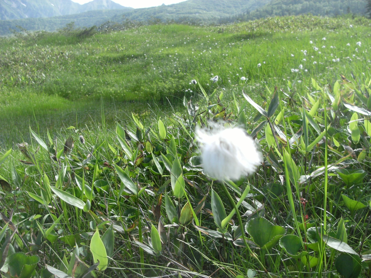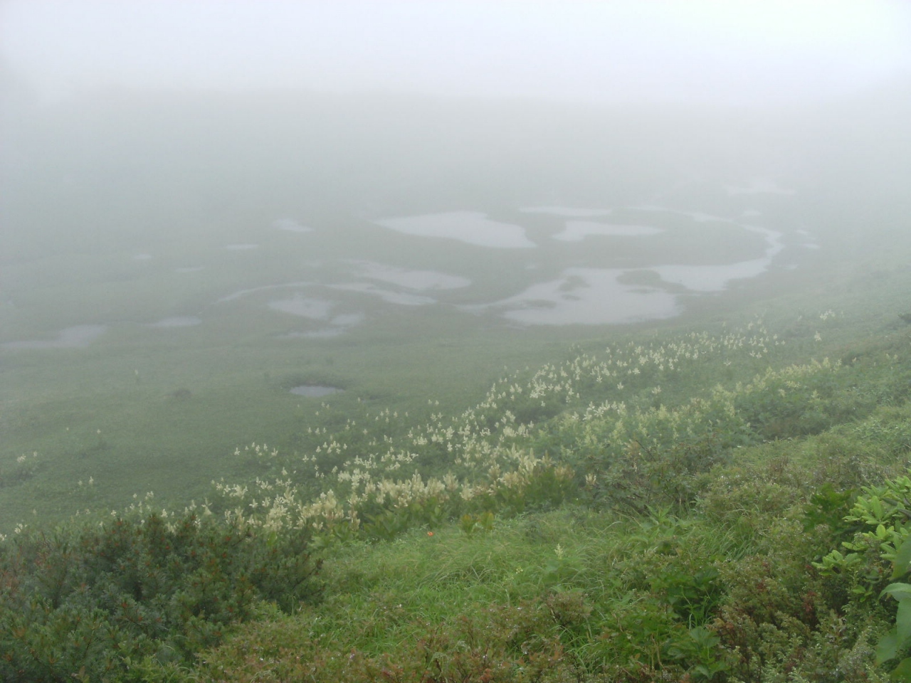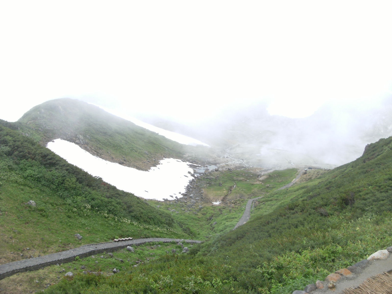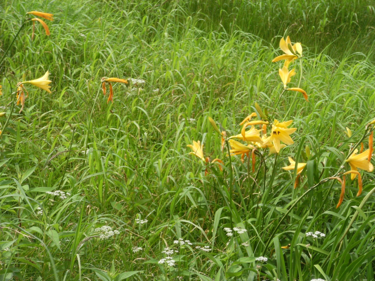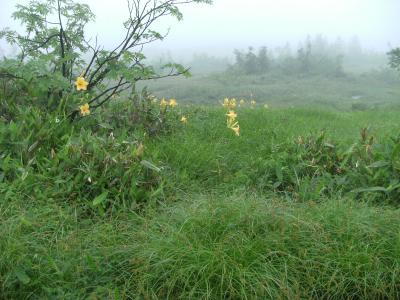 弥陀ヶ原や室堂周辺を歩いた限りでは、ニッコウキスゲ(ゼンテイカ)は遊歩道沿いよりも高原道路沿いのほうがずっと多いようです。遊歩道ではごくたまにちらほら見かけるだけなのに、バスの車窓からはわりと頻繁に、しかもそれなりにまとまって群生しているのを見かけます。旅行中、悪天候で景色が見えない日が多かったのですが、車窓から見える花で少しは楽しめました。