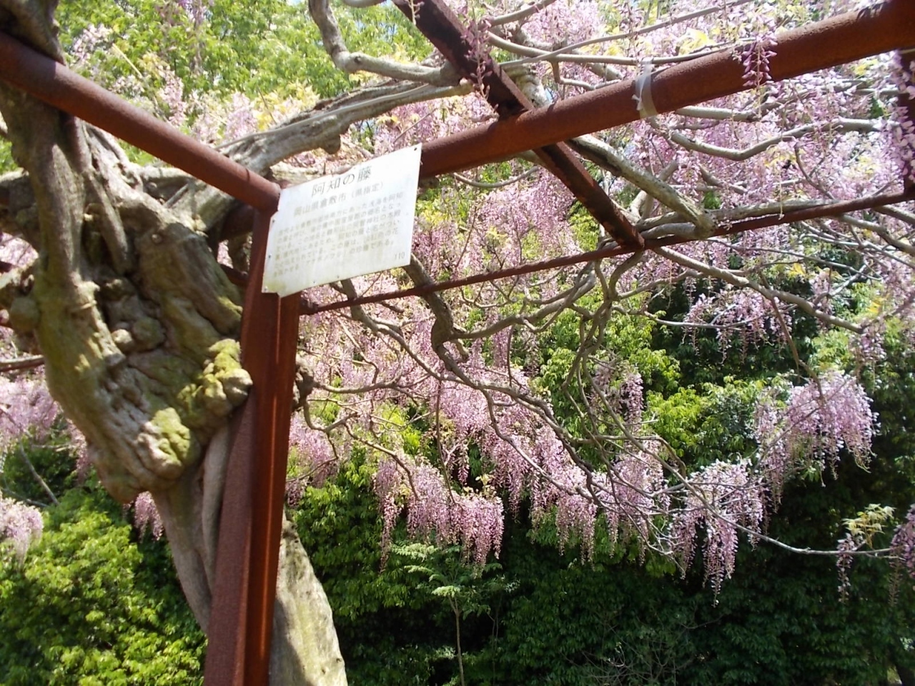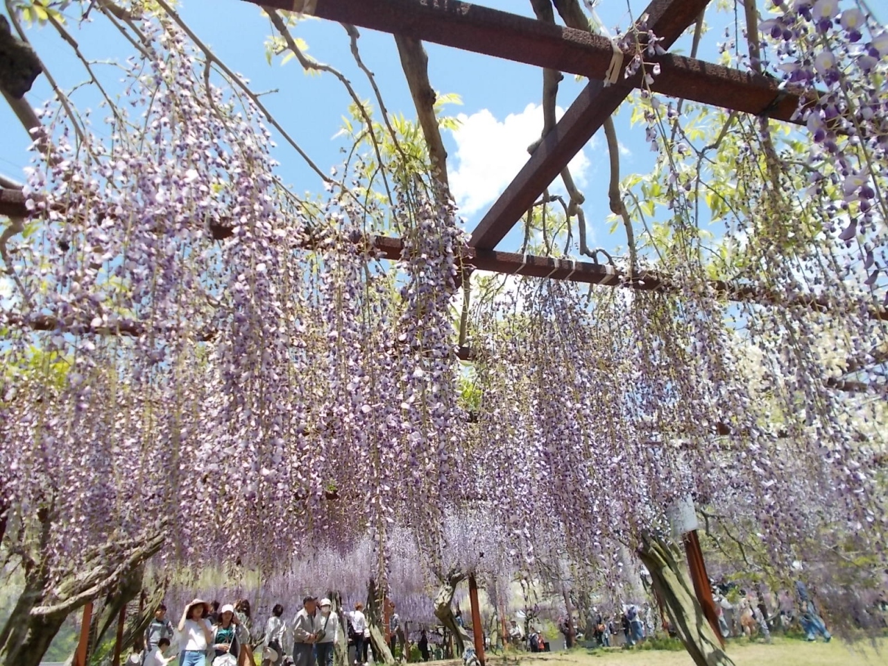 全国各地や中国などのいろんな品種の藤が植えられていて、広い藤棚全体が満開になっている様は壮観です。これだけの規模の藤棚はなかなかありませんし、広島県の三永水源地など大規模な藤棚があるところも樹勢が衰えて花があまり咲かなくなっているので、勢いよく咲いているここは貴重な存在だと思います。JR和気駅からやや距離がありますが、川沿いに歩いていけば着くのでわかりやすいですし、藤公園に向かう観光客のクルマは別の道を通るので、交通量も少なく景色も良くて、多少距離があっても気持ちよく歩けます。