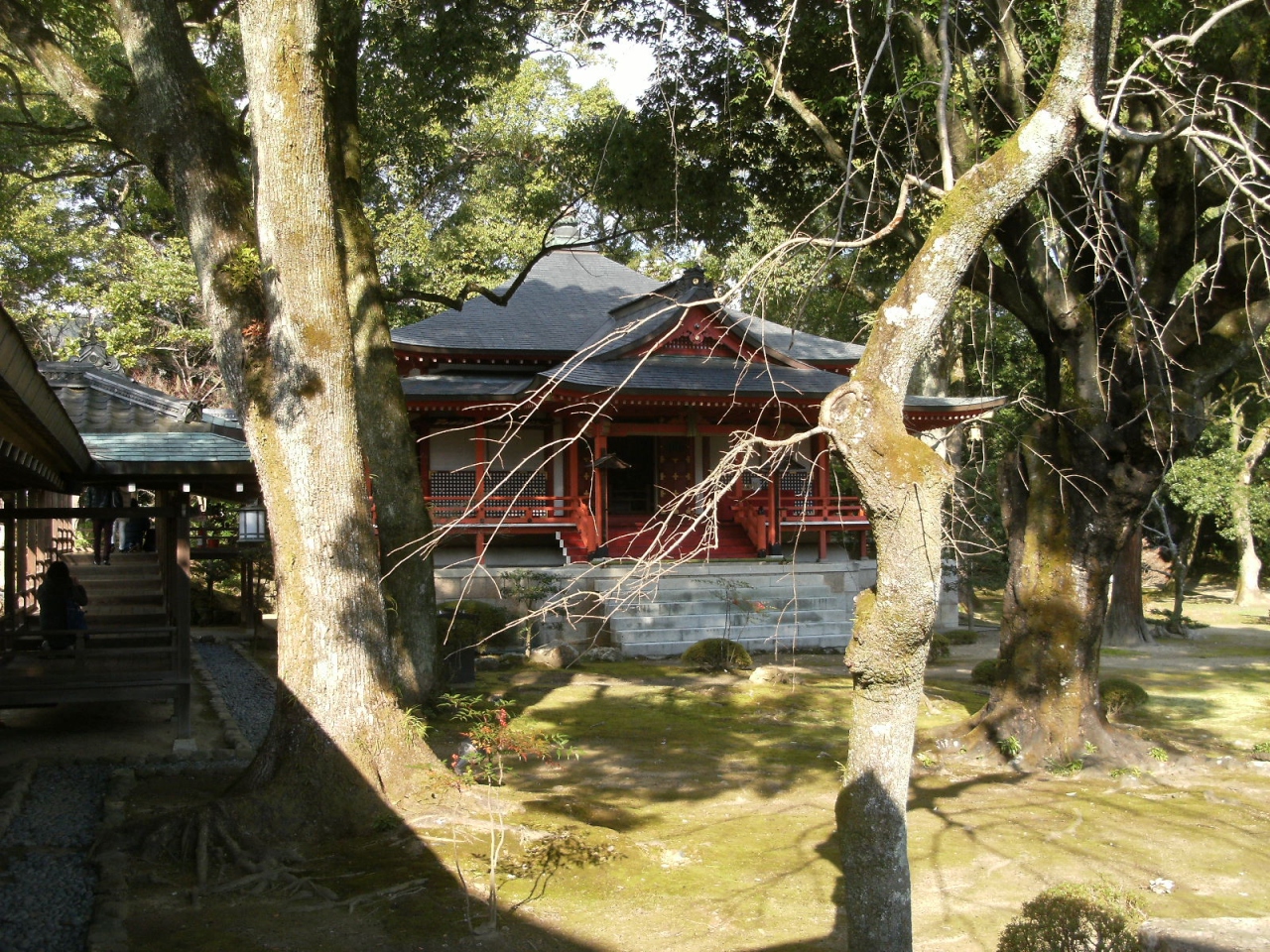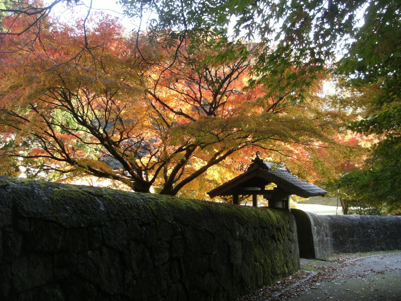 敷地内にある楷の木の紅葉が有名。とくに講堂の窓から楷の木が見える構図がカメラマンに人気で、講堂の廊下にカメラを構えた人たちがたくさん陣取ってました。本当は講堂の中から撮れれば良いのですが、国宝指定されている講堂の中は立入禁止になっているため、みんな仕方なく反対側の廊下の窓ごしにわずかに垣間見える楷の木でがまんしている状態。NHKのニュースで紹介された映像は講堂の中から撮影されてましたから、テレビ局などにだけ特別に許可しているようです。