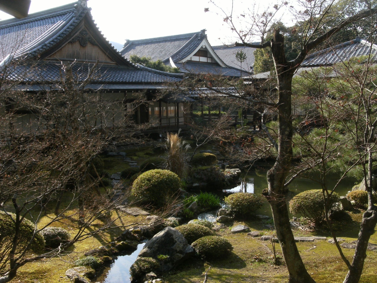 仏像やお堂といった仏教寺院としての見所よりも、狩野山楽らのすばらしい襖絵がある正寝殿など宮殿としての側面のほうが、より印象が強いです。拝観受付を入ってすぐの玄関にも輿が展示されていて、皇室ゆかりの寺であることを前面に押し出しています。庭や大沢池の眺めも風情があり、紅葉や桜の時期にまた来たいと思いました。