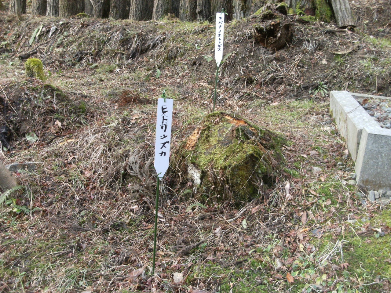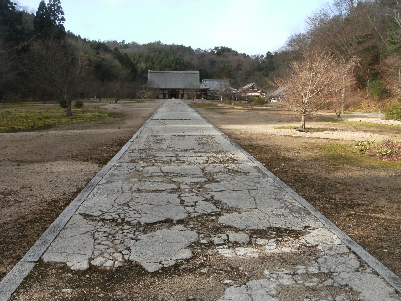 光信寺温泉ゆっくらからグラウンドゴルフ場横の道を歩くとすぐに山門があります。山門から本堂までの間にけっこう大きな広場があり、また、本堂のほかに庫裏や書院、宿坊、開山堂など多くの建物があって、なかなかの大寺院という印象を受けました。本堂の裏には枯山水の庭もあります。開山堂は裏山を少し登ったところにあり、そこから裏山の斜面に遊歩道が整備されていて、道沿いに山野草の名前を書いた札がたくさん立てられており、小規模な山野草園になっているようでした。寒い日でしたが、本堂にポットとお茶のティーバッグが置いてあって、自由に飲めるようになっていて、実にありがたかったです。