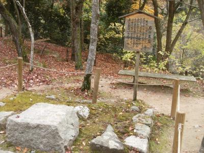 全長285mで全国9位の規模をもつ前方後円墳。全国4位の造山古墳もこの近くにあり、当時(5世紀ごろと推定されています)この地域を治めていた政権が、大和朝廷に匹敵する強大な勢力をもっていたことを窺わせます。造山古墳と同様、陵墓指定されていないので、自由に立ち入ることができます。墳丘の傾斜は急で、落ち葉が積もっていて滑りやすいですが、ちゃんと道がついており、地元の人が犬を散歩させたりしています。
