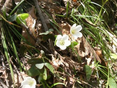 一合目から二合目まで谷川沿いの道で、ミヤマカタバミ、ショウジョウバカマ、イカリソウ、エンレイソウなどの花が見られます。三合目からは直線的な急登。ほとんど階段状に整備されており、とくに危険はありません。階段状になっていない一部の急斜面には鎖やロープがあります。でも、地面が乾いているときは使うまでもないくらいです。