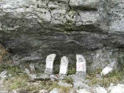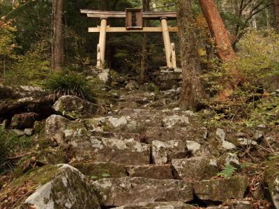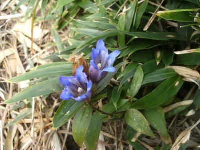 小女郎峠への登山道沿いにはリンドウがところどころ咲いていました。また、修験道関係と思われる石仏もありました。