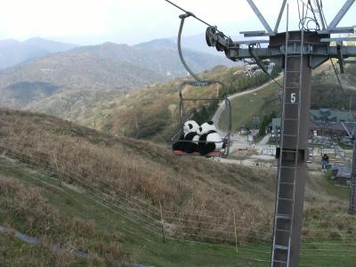 リフトに、なぜかパンダやくまのぬいぐみが乗ってました。誰も乗ってないとさびしいからでしょうか。