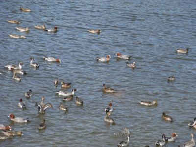 赤松池にいる水鳥の群れは、人に馴れていて逃げない(というか寄ってくる)ので、間近に見ることができます。えさをやっている人などはヒチコックの「鳥」状態で、心配になるくらいです。大きなカメラを抱えて鳥の写真をとってる人がたくさんいます。