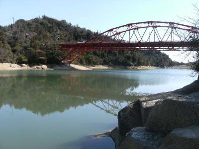 池の周囲をめぐるだけでも、けっこう歩きがいのある広い公園には、ハイキングコースもあり、山上から瀬戸内海の眺めが楽しめます。山中のいたるところに生えているミツバツツジの咲く4月上旬がベスト。園内の桜が見ごろになるのとほぼ同じ時期です。