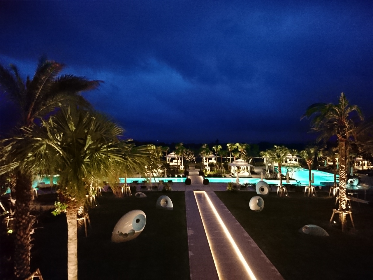 ヴィラガーデンは、プールを囲んで3つのタイプのお部屋があります。いちばん海よりのなんくるの宿に宿泊。海はみえません。49平米の広い部屋で、アメニティはMIKIMOTO。また、DHCなどのお試しセットもありました。テラスには、テーブル、ブランコのようなチェアがありました。プールは小さい、ビーチはなくフサキビーチまでいく必要があります。スポーツジムもあればいいなと思いました
