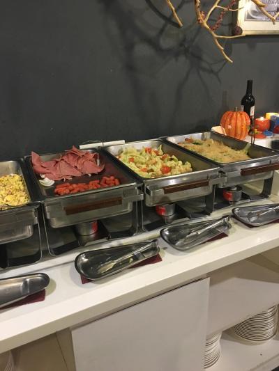 朝食:地下一階の食堂です。豪華ではないですが、普通によかったです。食パン、おかゆ、卵やき、ソーセージ、ビーフンなど。